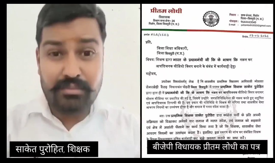 मप्र के शिवपुरी जिले में प्रायमरी स्कूल के शिक्षक को प्रधानमंत्री नरेंद्र मोदी की आवाज़ की नकल करना भारी पड़ गया है। बीजेपी विधायक की शिकायत पर उन्हें निलंबित कर दिया गया है